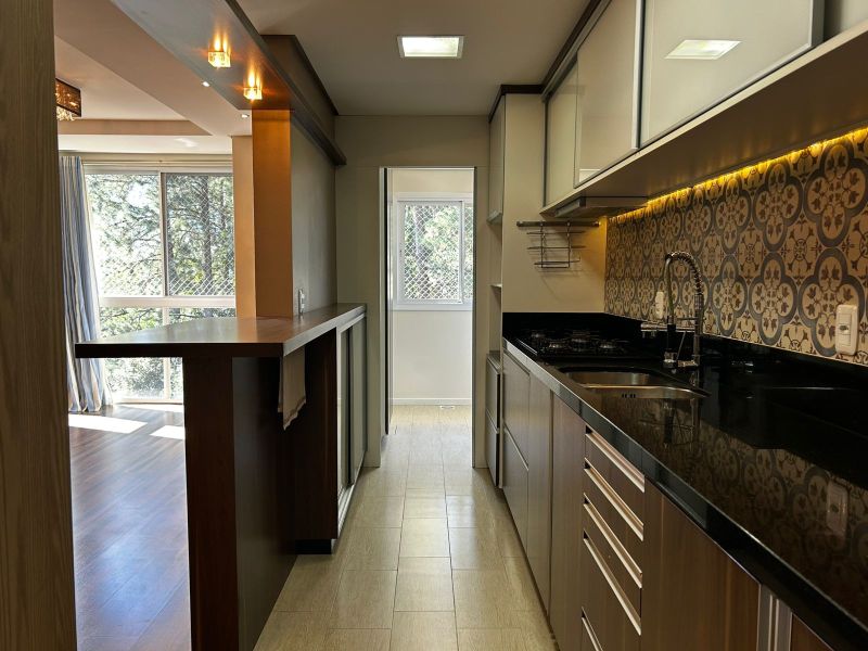 Com ambientes bem distribuídos, conta com sala de estar e jantar integradas, cozinha e lavanderia, sacada com churrasqueira para momentos de lazer, uma suíte, dois dormitórios com armários e banheiro social.