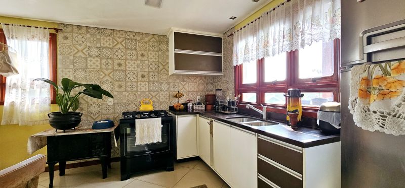 São três pavimentos bem distribuídos, no piso térreo conta com uma garagem coberta para dois carros e um porão com reservatório de água. No primeiro piso, há um hall de entrada acolhedor, cozinha e copa integradas, dois dormitórios, banheiro social e um jardim de inverno encantador com churrasqueira, que também funciona como uma confortável sala de estar.