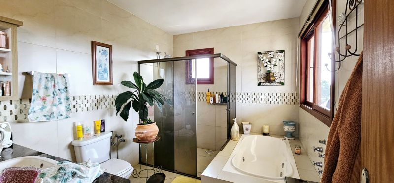 No segundo piso, há uma varanda fechada com vista, perfeita para ser usada como sala íntima ou escritório, além de uma varanda aberta. A suíte é ampla e aconchegante, com banheiro privativo, banheira de hidromassagem e acesso a varanda aberta.