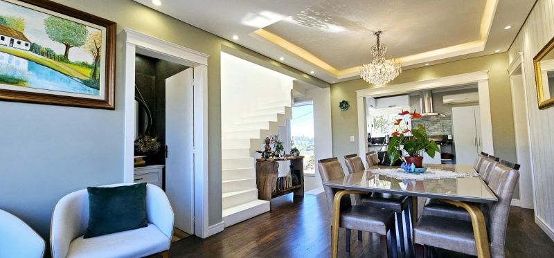 Semimobiliada, está situada na Rua Alfredo Petry e conta com 240m² muito bem distribuídos em 2 dormitórios, sendo 1 suíte com closet, banheiro social, sala de estar, sala de jantar, cozinha e duas áreas de serviço. A área externa é um convite ao bem-estar, com piscina aquecida com energia solar, pergolado, lago ornamental, canil e um belíssimo jardim iluminado. O lote possui 360m² e ainda conta com lareira e sacada, que tornam o espaço ainda mais aconchegante e especial.