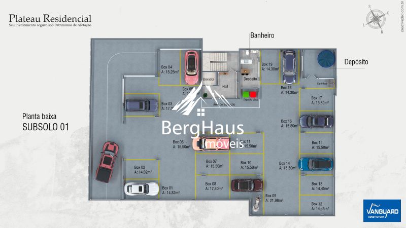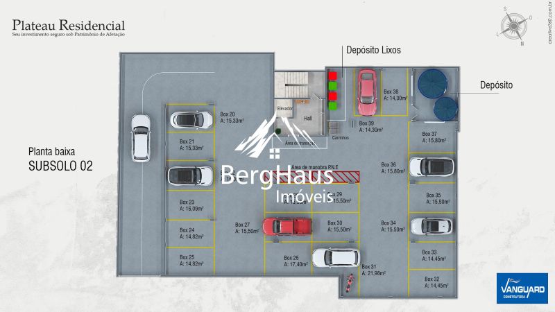 Os apartamentos apresentam vagas de garagem confortáveis e de fácil circulação, além de um projeto moderno com acabamentos de alta qualidade.